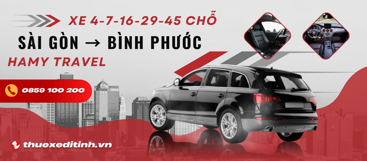 Dịch vụ thuê xe đi Bình Phước từ TpHCM do Hamytravel cung cấp đa dạng các loại xe từ 4 chỗ đến 45 chỗ và xe limousine với mức giá cạnh tranh, phù hợp với nhu cầu du lịch, công tác hoặc đi lại của khách hàng.